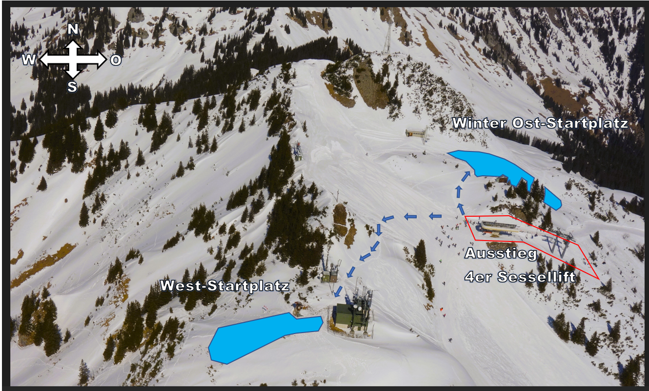 Im Winter haben wir zwei Startplätze und bitten dich einem dieser beiden Startplätze zu benutzen. Einen Ost- und einen Weststartplatz. Hier ein Überblick.